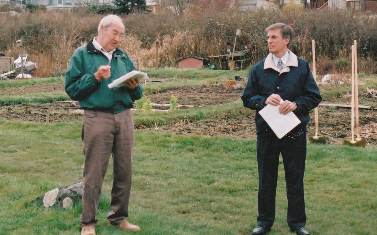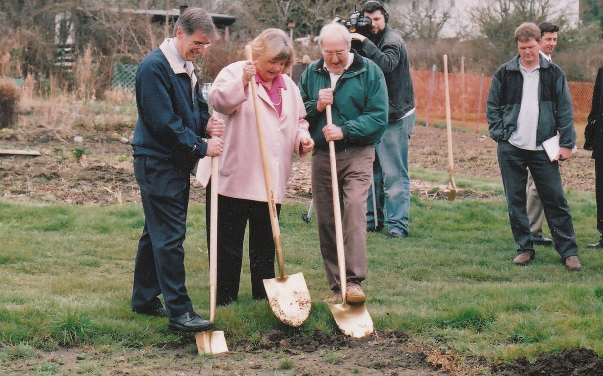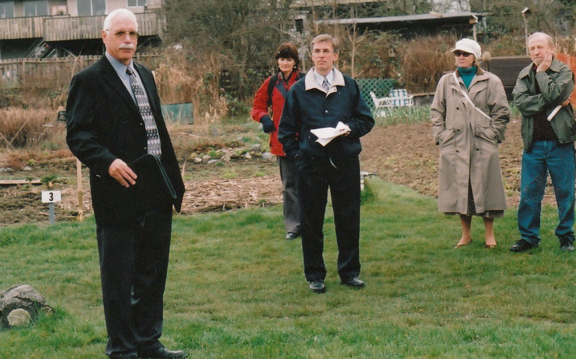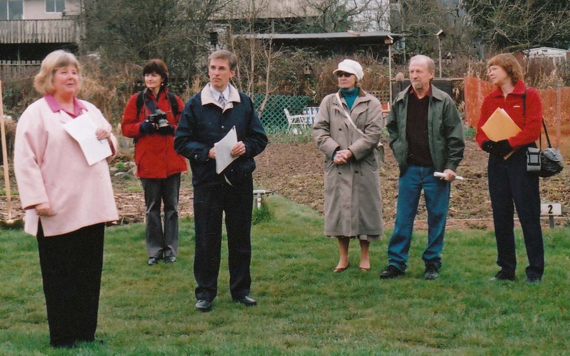 On Tuesday March 8 2005 Mayor Frank Leonard and Saanich council announced the receipt of a Free Crown Grant of 3.216 hectares of agricultural land surrounding Swan Creek from the province of B.C. administered by Land and Water B.C. a Crown corporation. The process began with a report by councillors Jackie Ngai and Carol Pickup in 2002 after they lost the Gordon Head gardens to developers. MLA Sheila Orr was insturmental  in helping with the process of securing the land. Ian Stenning president of CCAA said the new status of the property was an important step for the Gardeners. Saanich had been leasing the land from the province since 1987. The Gardens have been running since 1972. The plots were 1,000 sq ft  and the rental fee was $35.00 per plot.